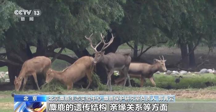 北京麋鹿生态实验中心、麋鹿保护研究室负责人郭青云:因为麋鹿是从小种群发展到现在,其实现在全球的麋鹿都是18只麋鹿的后代,我们也是想系统分析一下国内外麋鹿的遗传结构、亲缘关系等方面,为后期的麋鹿科学管理、科学保护提供一些依据。